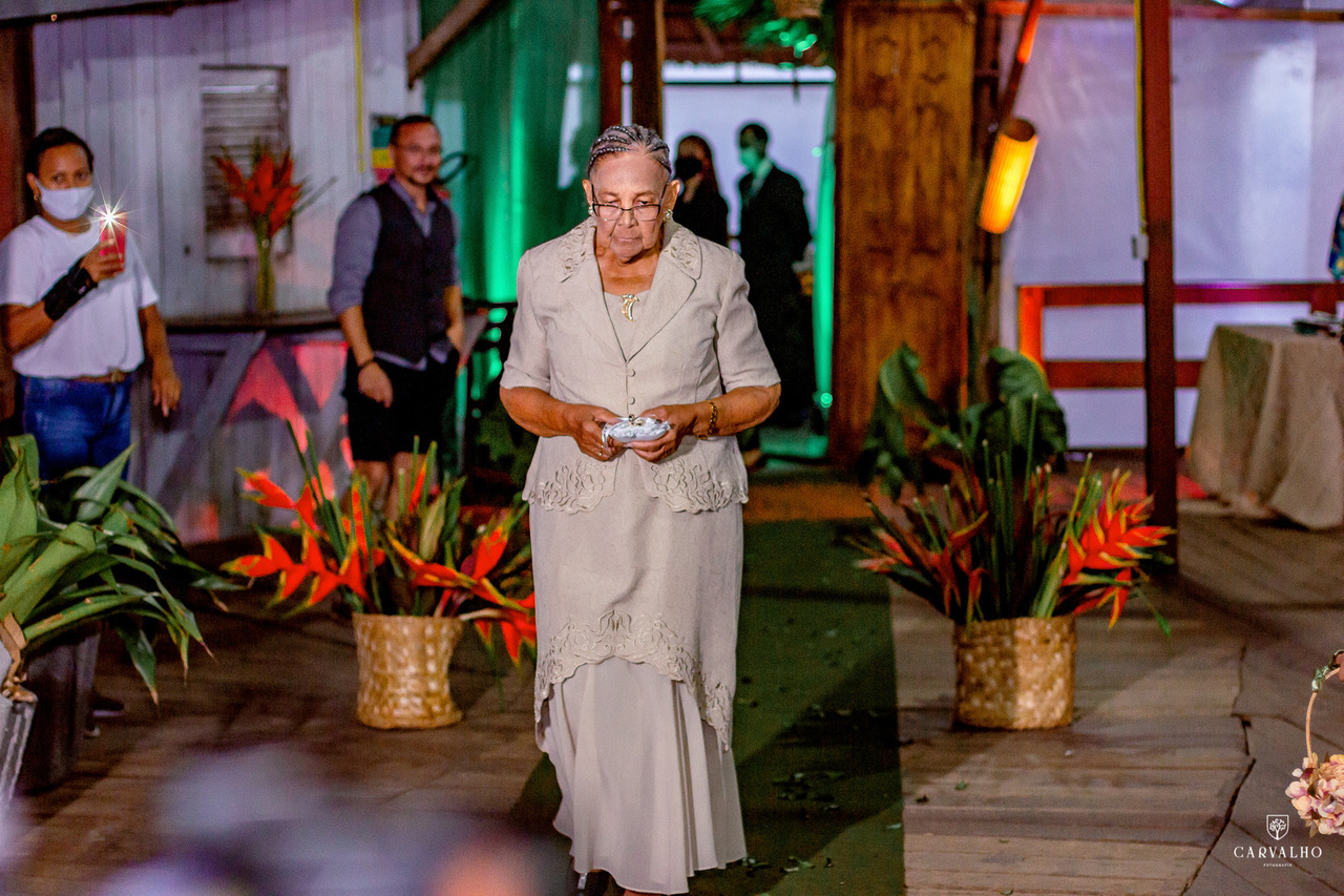 Por exemplo: o terço usado por sua mãe, sua avó, no casamento delas, um objeto de tradição familiar sendo usado como porta-alianças tornará sua entrada única!